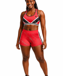 Trinidad Inspired Women’s Sports Set – Red, Black & White Athletic Bra and Shorts