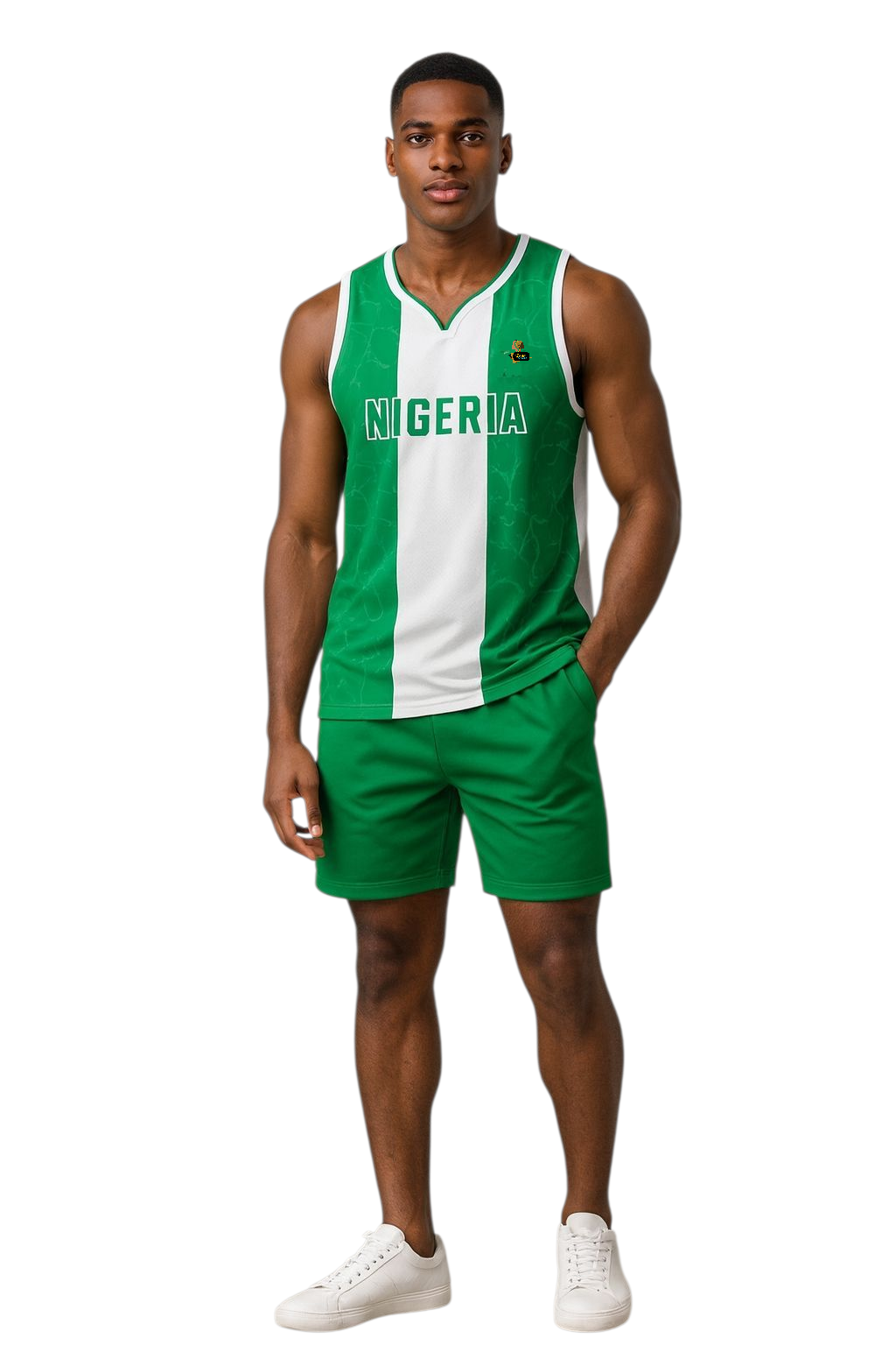 Show your pride and style with this Nigeria Basketball Jersey Set, designed for athletes and fans alike.